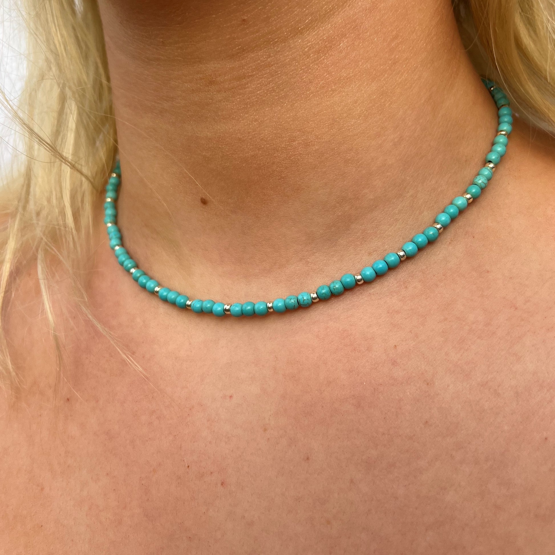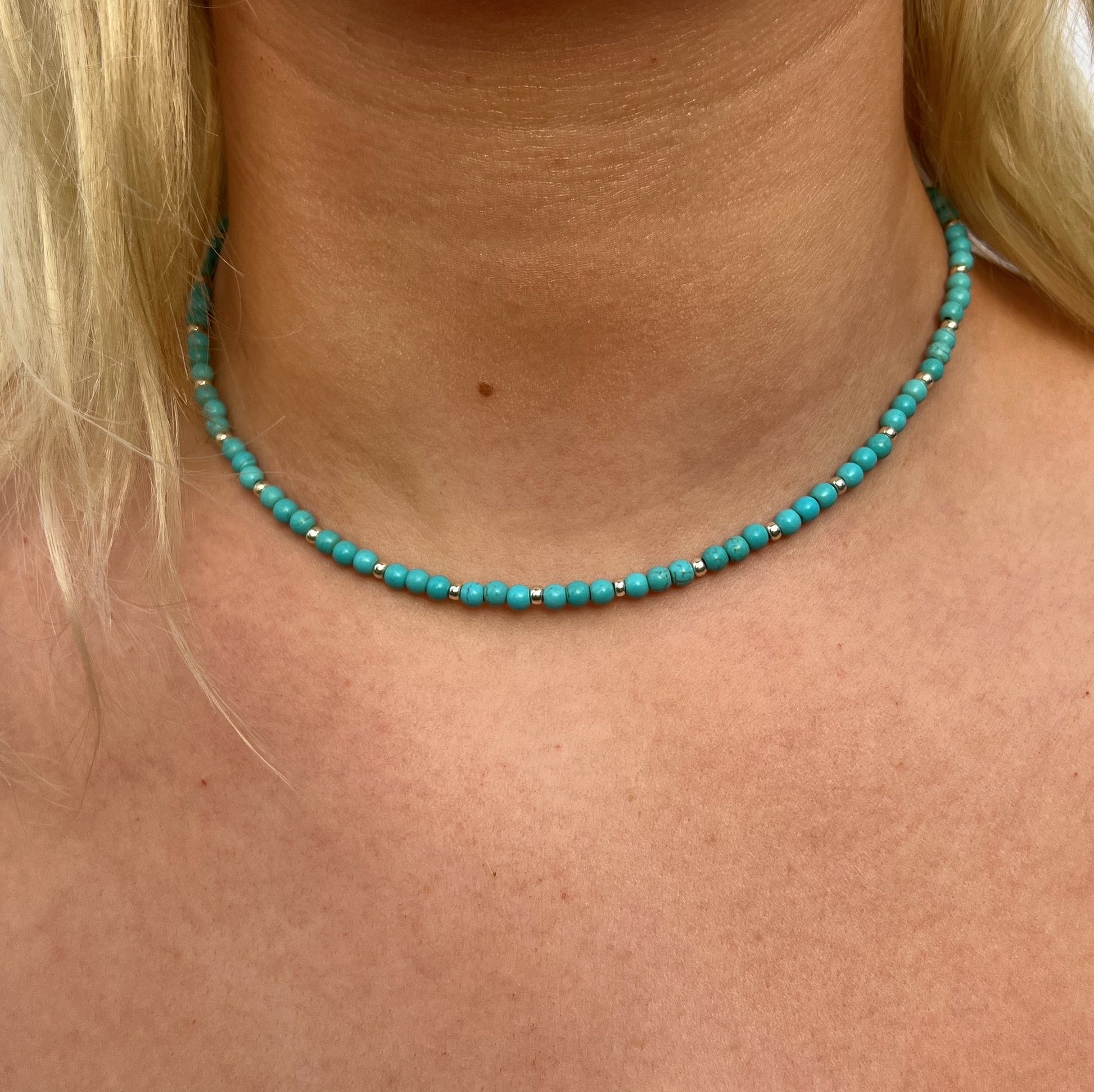 Turquoise beads with silver spacers - 14 inches + 2 inch extender chain