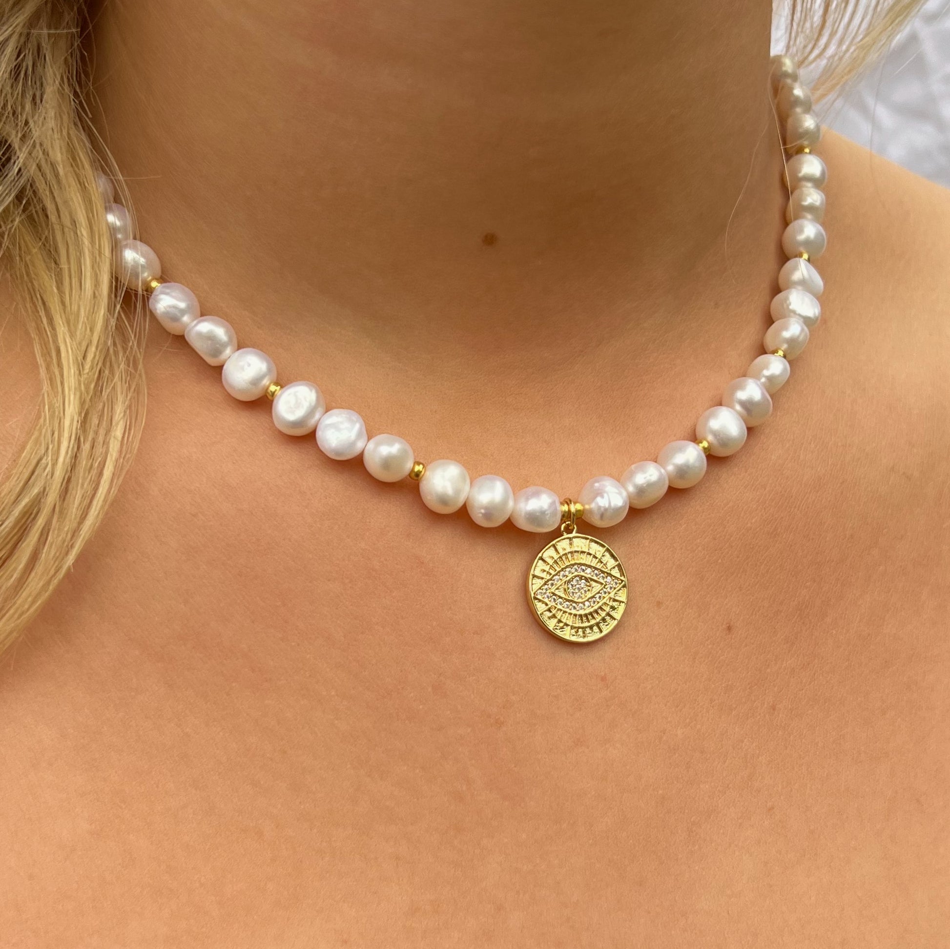 Beautiful freshwater pearls with a gold plated CZ pendant