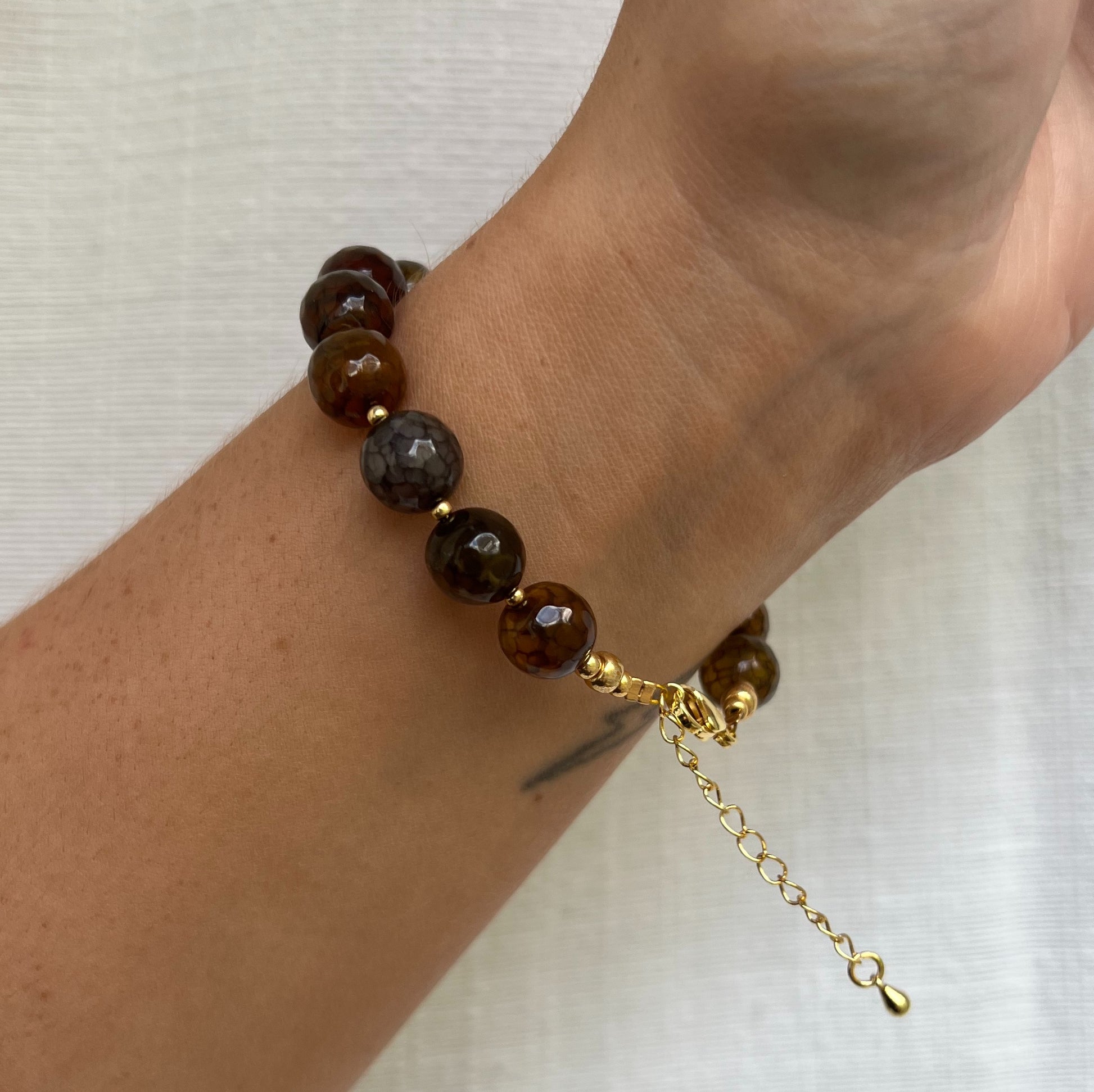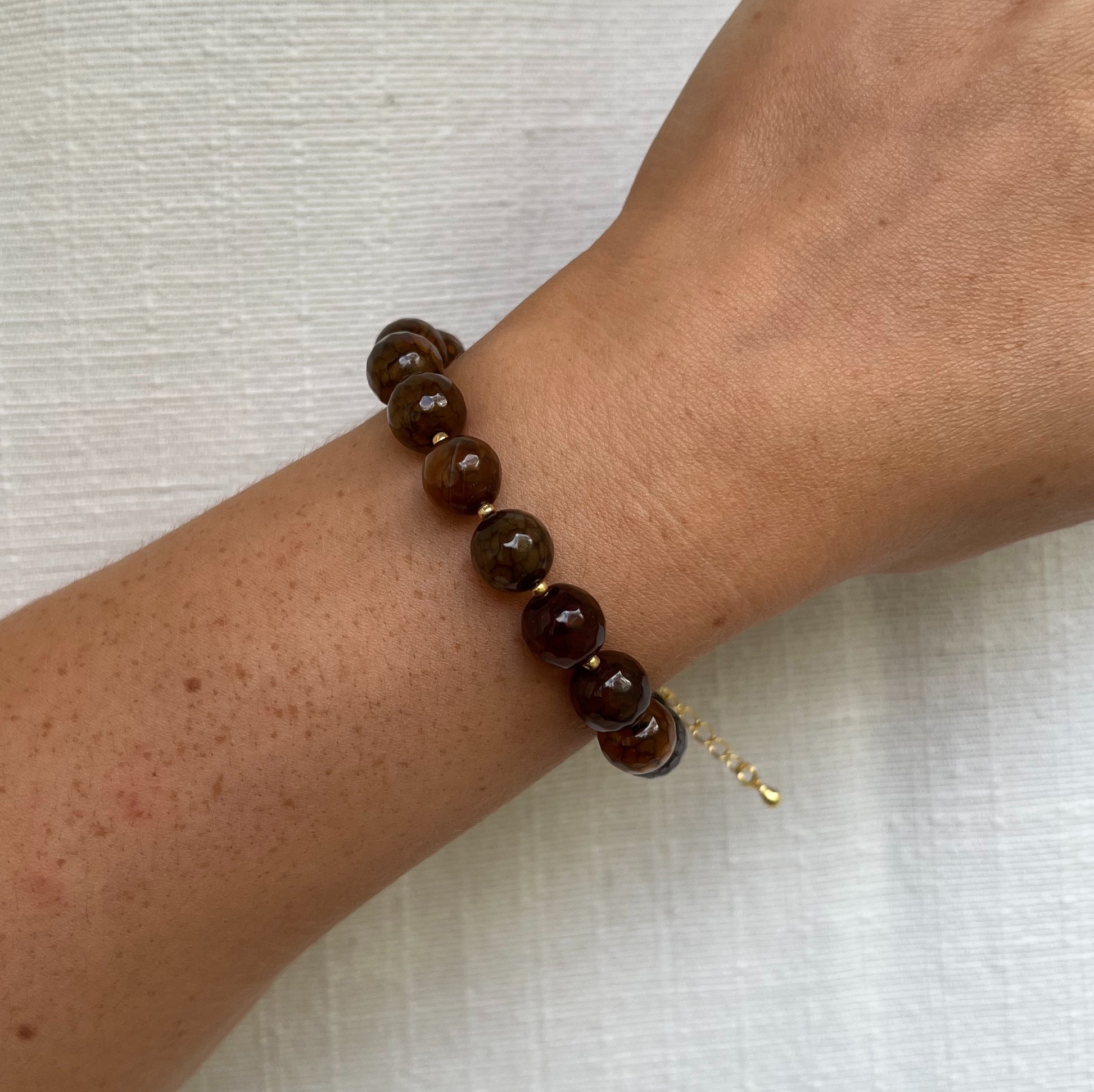 Chunky brown agate beads with golden seed beads (similar to our Eva bracelet but lighter shades of brown)