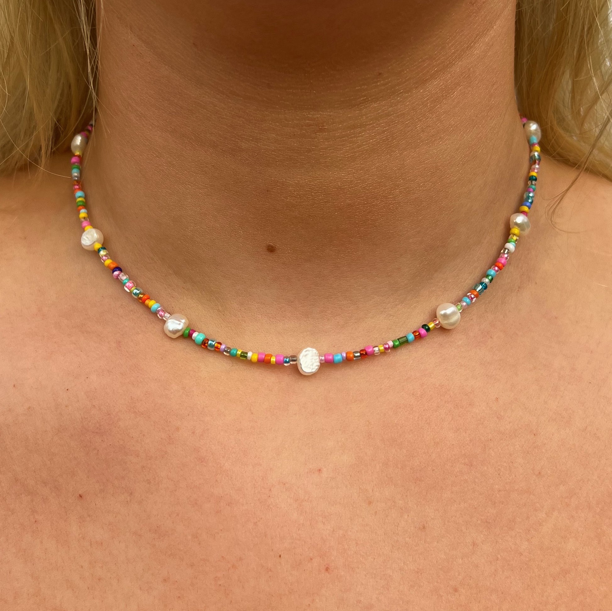 Our favourite multicolour bead mix with beautiful freshwater pearls - 14 inches + 2 inch extender chain